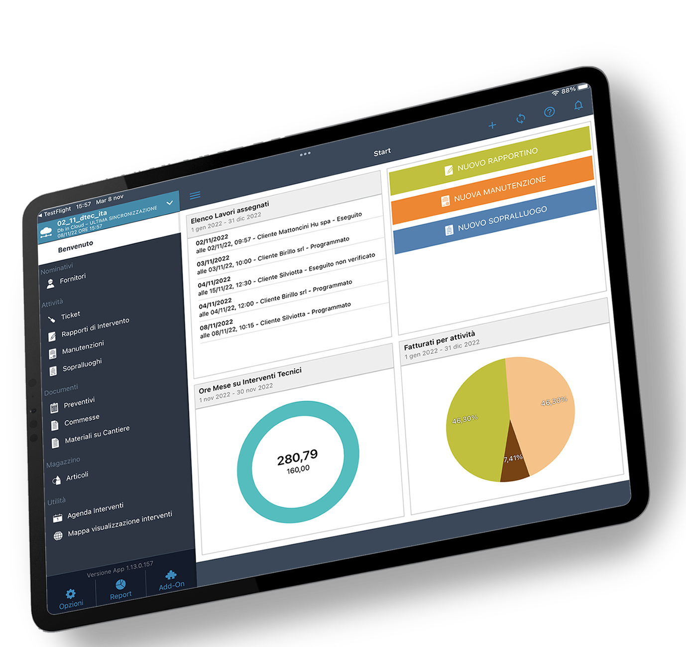 App semplificata e su misura per la Gestione dei Tecnici che devono essere precisi ma veloci nella compilazione del Rapportino di Intervento. Il Tecnico scrive il tipo di lavoro che ha eseguito, scatta le Foto a lavoro completato, aggiunge il materiale utilizzato per il lavoro e invia per email o Whatsapp i rapporti di lavoro in PDF con Firma Cliente.