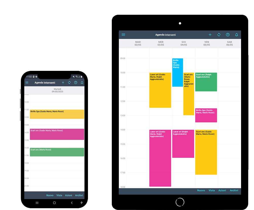 Organizzi la data e l'ora degli interventi dalle postazioni Desktop o anche dal Tablet e Smartphone